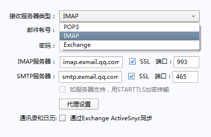 IMAP收信服务器:imap.exmail.qq.com,使用SSL端口号:993