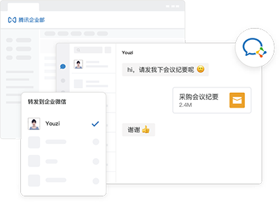 作为企业微信产品矩阵的重要成员,正与企业微信、 Foxmail、QQ邮箱App、微盘、微文档等产品深度融 合,为客户构造一体化的办公环境,提升企业沟通协作效 率,成为企业商务拓展、客户维系与服务的基础连接工具。